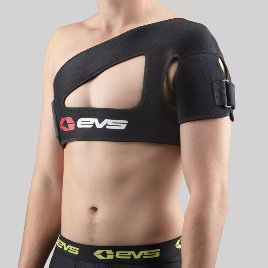 The EVS SB02 Shoulder Brace at J&R Bicycles is designed to provide comfortable compression and support for old shoulder injuries without restricting movement. Made from lightweight and flexible neoprene, this brace features a breathable design and is easy to put on and take off. The adjustable arm closure protects you from chaffing and the no-snag design fits both right and left shoulders.