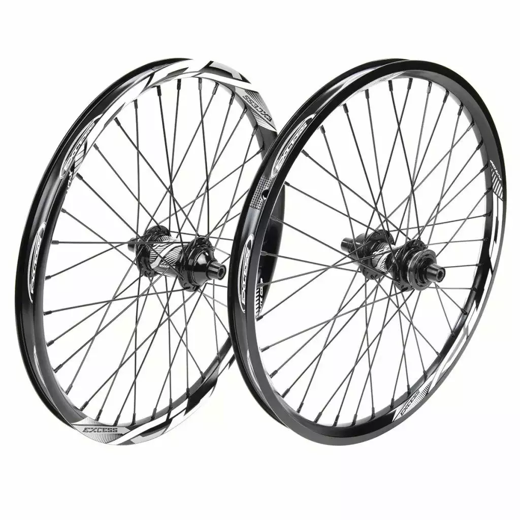 Excess XLC-1 Pro Lite/Pro Alloy Wheelset-36H-20×1.5″-Black/White is from an all new, track-proven line up. Featuring proprietary, double-walled, 6061-T6 alloy rims. The front is mated to an Excess XLC-1 sealed front hub with alloy axle and end caps. While the rear has a sealed cassette hub with a precision single engagement, 3 pawl system and a 24 ratchet ring. These stiffer and stronger rims make for a great upgrade for your bike with a nice return on investment realized in pure performance.