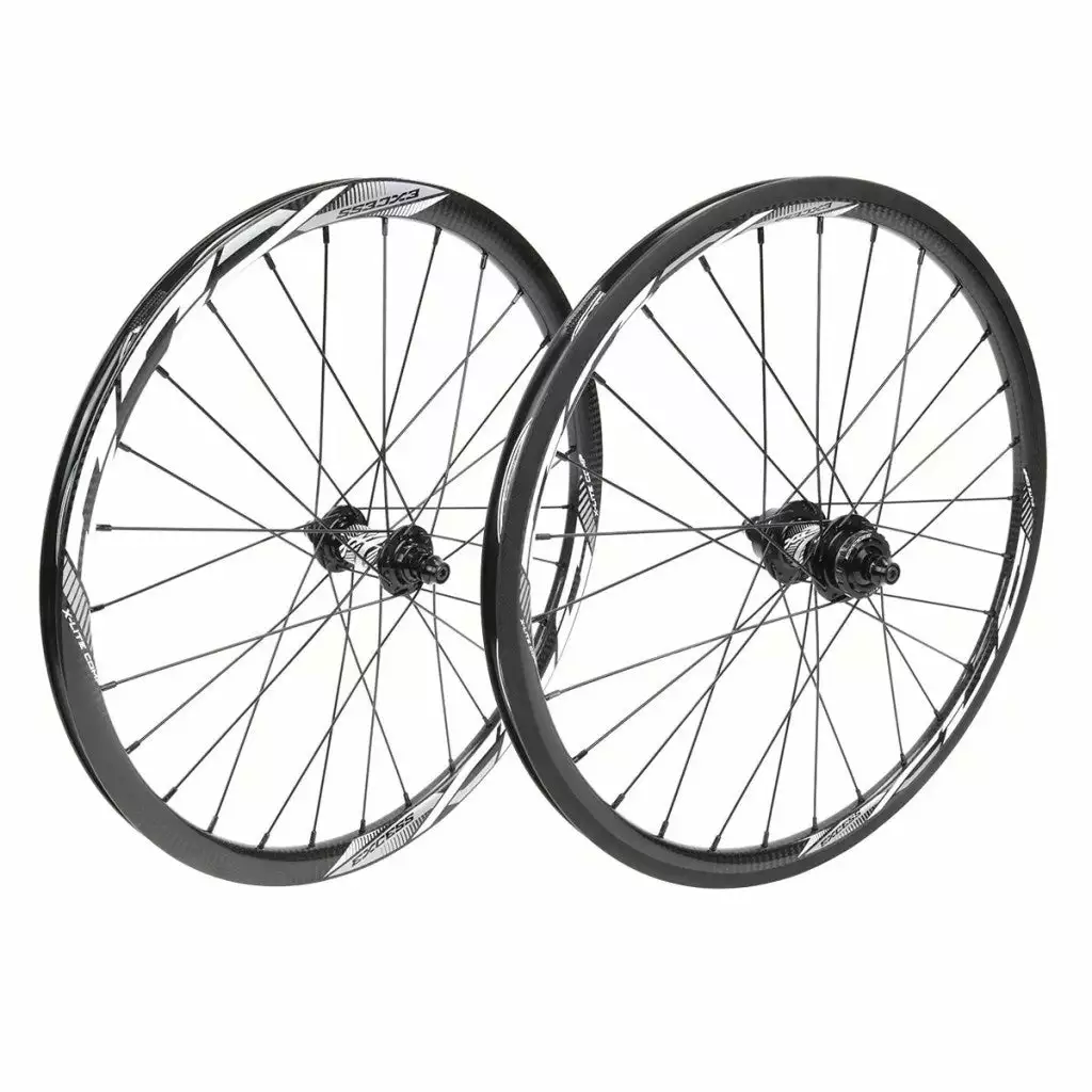 The Excess XLC-3 Mini/Expert Carbon Wheelset-28H-20×1 3/8″ is the pot of gold at the end of the rainbow in your search for the ultimate wheelset. Inside that pot of gold will be found the usual high end features: brakeless and weight saving profile of the front rim, sealed bearings as far as the eye can see, and hard hittin’ alloy driver with 3 pawls, 5 fin engagement into a 120 ratchets outer ring. But let’s be honest what you were really hoping to find and the reason you were even looking for that pot o’gold are the sweet and tasty 3k carbon fiber rims. Gloss finish. Water decals. Lighter and stiffer than any alloy can even dream.