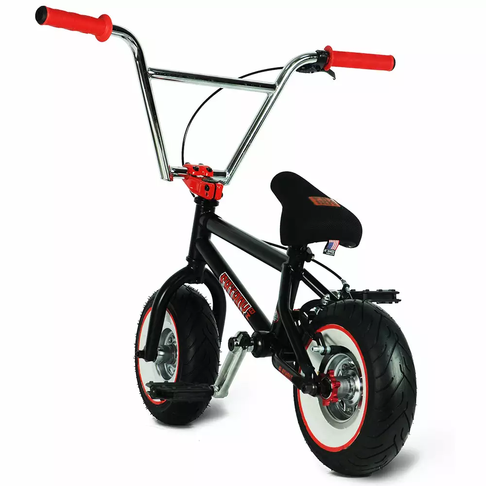 The new X Pro series is FatBoys upgraded prime mini BMX collection. The Bazooka is the latest addition and designed to take a serious amount of adult sized abuse, from front-flips to 540 spins. It comes with 6 Ply tires, Cro-Mo 4 piece bars, and Fatboys alloy top load stem. As the extreme sport progresses They wanted to introduce an upgraded build for those on the next level, a longer frame, bmx heat-treated bars & a significantly stronger wheel. Their bikes feature a sealed 9 tooth wildcat cassette hub for fast, precise, and loud engagement.
