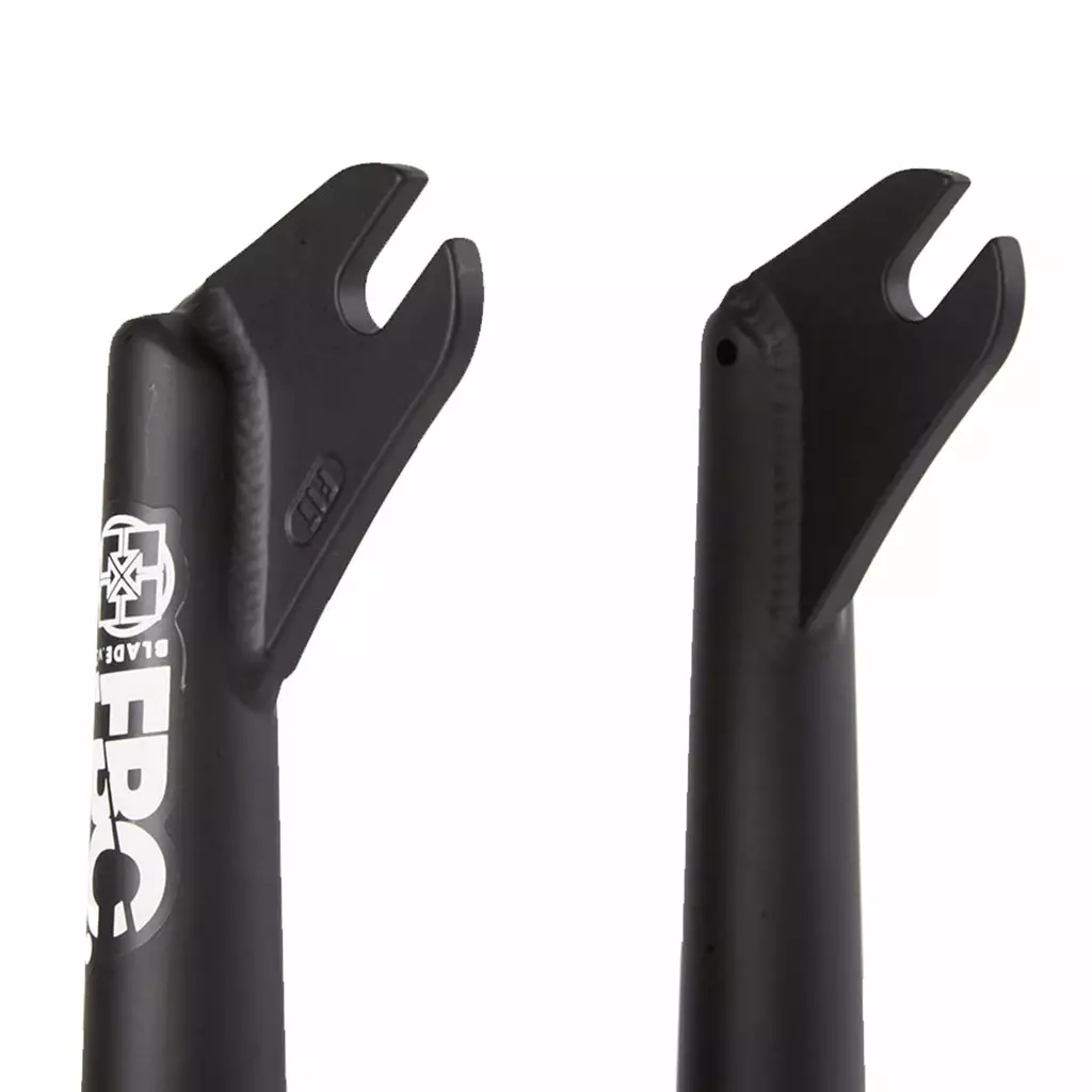 Fit Bike Co. Created the Fit Blade V.3 Fork-20″-10mm with maximum strength in mind. Stronger than welded or fused caps, these legs are swaged and the ends are formed rather than capped, meaning they can hold to intense impact. Not only does this design provide improved durability, tapered and butted legs mean more peg clearance and better handling.