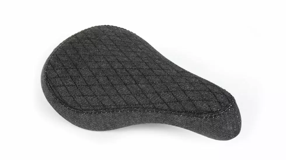 The Fit Stitch Stealth Pivotal BMX Seat-Black Denim comes complete with an embossed leather tag at the back. Medium padding.