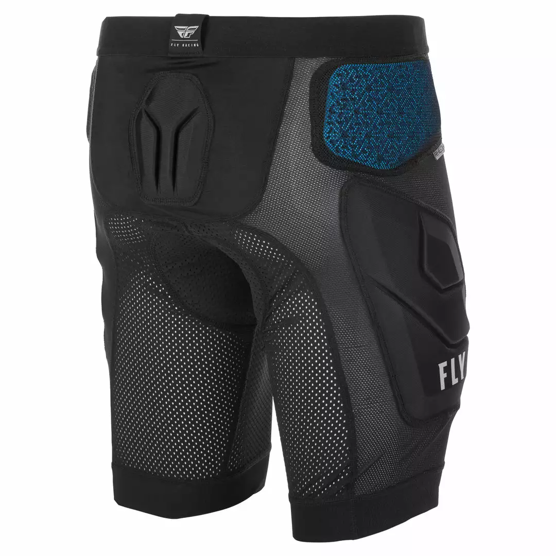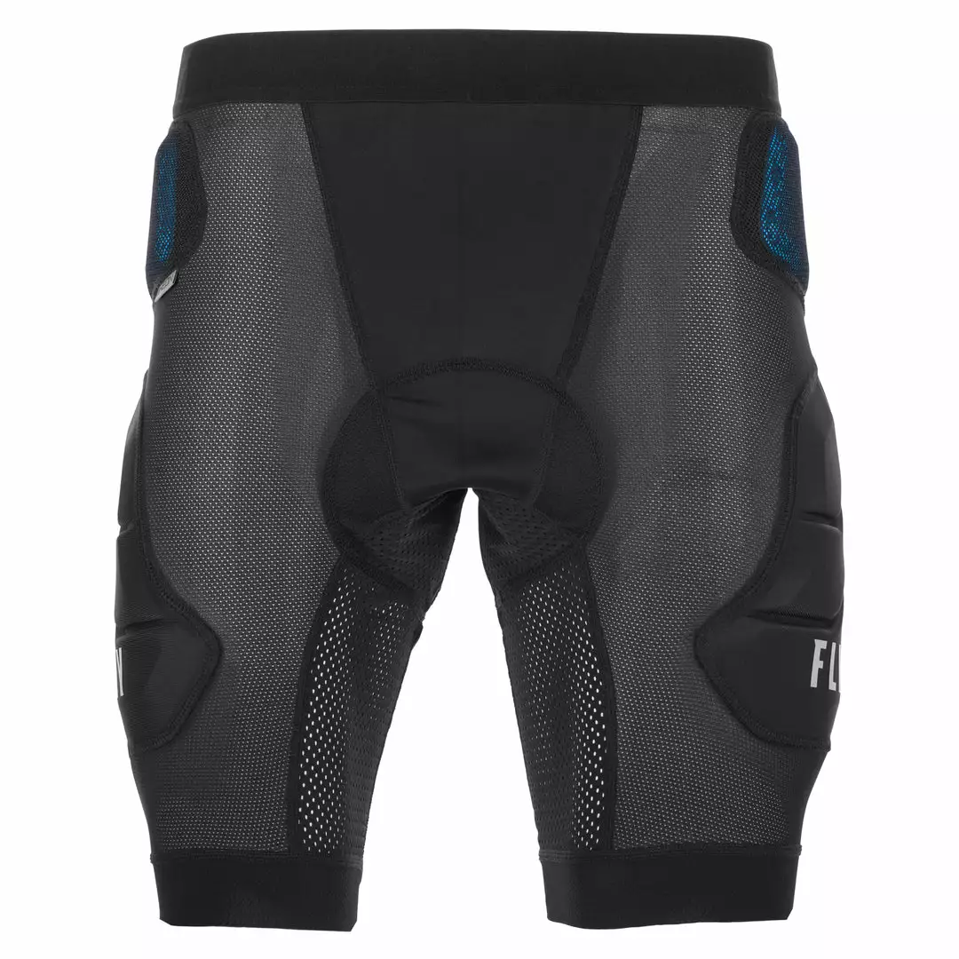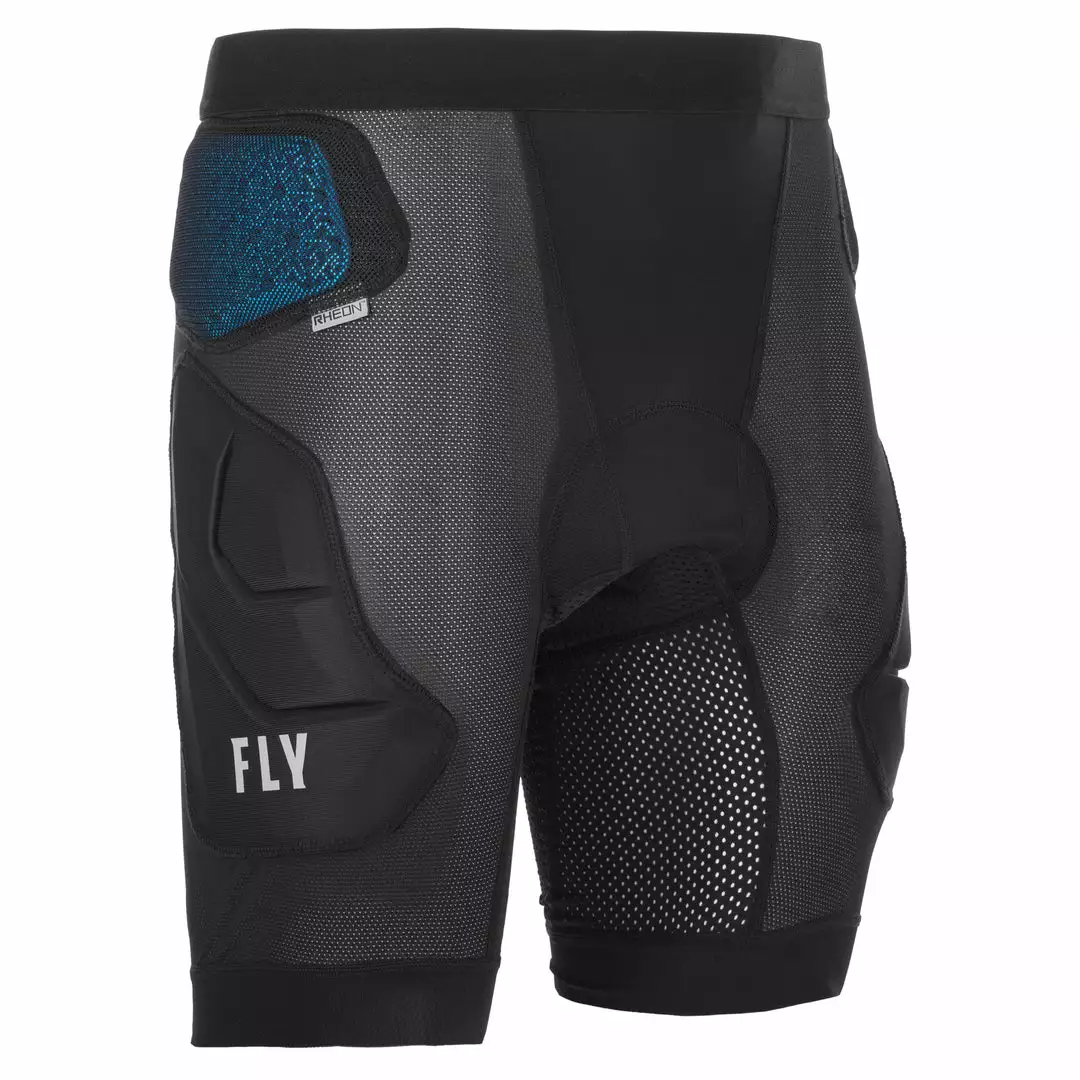The Fly Racing CE Revel Impact BMX Race Shorts-Black consists of EVA foam padding and RHEON hip pads, a viscoelastic padding material. Viscoelastics are soft like EVA. Once they are impacted, they turn hard and protect you like old school hard plastic pads. The leg cuffs are lined with silicone on the inside so they wont ride up. The overall material is a stretchy, meshy technical masterpiece that will have you in some serious comfort.