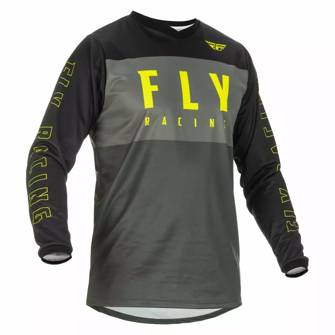 The Fly Racing F-16 BMX Race Jersey-Grey/Black/Hi-Vis is made from a durable, performance-minded polyester. With a stretchy, tagless collar and extended, stays-tucked-in-all-day tail this jersey will have you basking in comfort so you can focus purely on your riding.