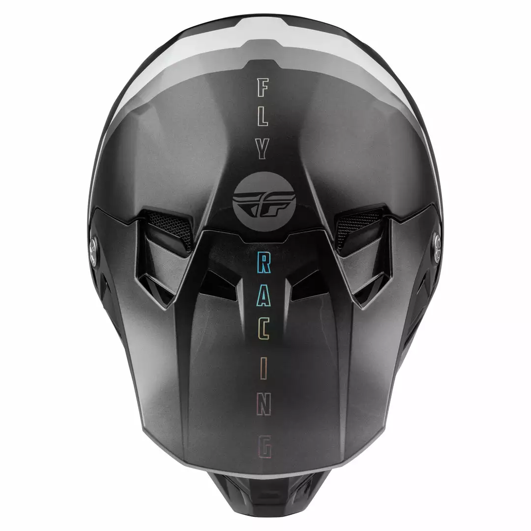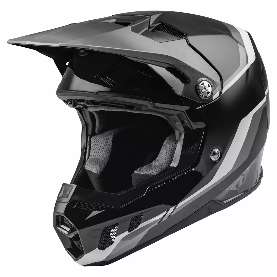The Fly Racing Formula CC Driver BMX Race Helmet-Black/Charcoal/White is constructed using carbon fiber, Kevlar, and fiberglass to create a wildly strong, yet lightweight shell. This is a serious helmet offering serious protection for your head and face. Features Impact Energy Cells that help act as a buffer between your brain and linear and rotational impact forces. Extra side padding helps mitigate collarbone injuries. With lots of ventilation your head will keep cool under stress.
