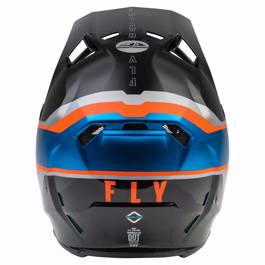 The Fly Racing Formula CC Driver BMX Race Helmet-Blue/Orange/Black is constructed using carbon fiber, Kevlar, and fiberglass to create a wildly strong, yet lightweight shell. This is a serious helmet offering serious protection for your head and face. Features Impact Energy Cells that help act as a buffer between your brain and linear and rotational impact forces. Extra side padding helps mitigate collarbone injuries. With lots of ventilation your head will keep cool under stress.