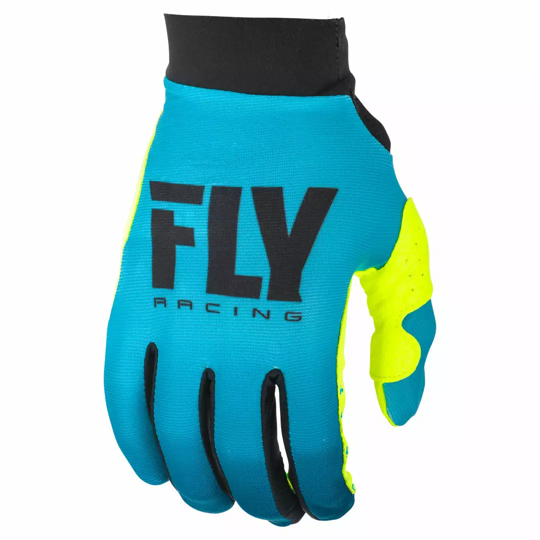 The Fly Racing Pro Lite BMX Race Gloves-Blue/Hi-Vis-Youth actually seriously fit like a glove. They are designed to fit close to your hand and extend a little further up your wrist with a velcro closure to create the perfect fit. Featuring a single layer Clarino palm, stretchy sidewalls, and a reinforced double layer thumb, these gloves also have, of course, silicone finger grippers
