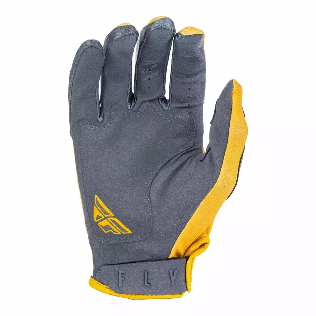 The Fly Racing Kinetic K121 BMX Race Gloves-Mustard/Stone/Grey offer minimalist unrestricted protection and a grip and fit that will never fail you. These gloves feature a reinforced palm and thumb for added coverage and stretchy Lycra sidewalls, split knuckles and ventilated gusset allow for comfortable flexibility and airflow. These gloves are not too snug or too loose and sport a secure fit with adjustable TPR wrist closures.