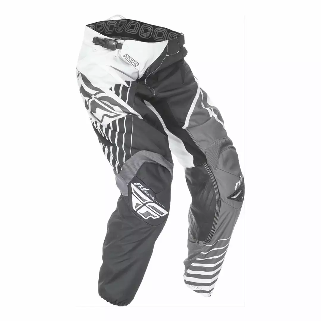The Fly Racing Kinetic Vector Race Pants-Black/White/Gray features super-tough construction, comfortable mesh liner and high quality sublimated graphics. These pants are the perfect choice for BMX and Motocross riders alike.