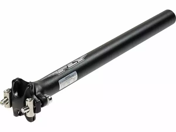 Light aluminum seat post with an easy 2-bolt micro adjust clamping system.