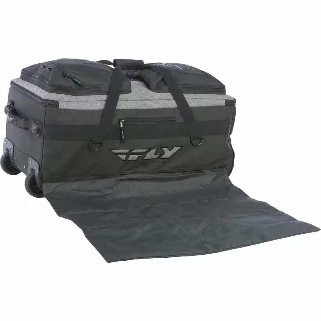 The Fly Racing Tour Roller Bag-Black provides the perfect balance in protection, mobility and quality for today’s riding needs. Constructed with a PVC backed polyester exterior and fleeced lined pockets for the inner compartments, the Tour Roller Bag will keep your gear and items protected while out on the road. Smooth rolling rollerblade styled wheels combined with a telescoping traveler’s handle will make sure that your gear moves at your speed. And when the ride is done, the vent grommets allow for air flow to help dry your dirty gear, with a mud mat easily accessible from the side of the bag to help clean out any accumulated dirt.