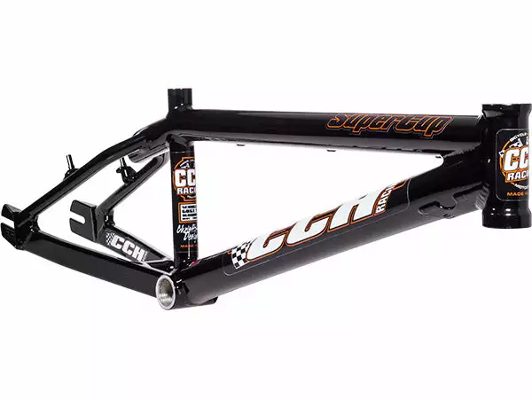 The CCH Racing Super Cup BMX race frames are U.S.A. Made from 6061 seamless aluminum tubing and heat-treated to T-6 hardness for improved strength and stiffness. The frames feature aggressive racing geometry, oversized tubing, unique CCH wishbone design, and their exclusive “closed-loop” boxed chainstay.