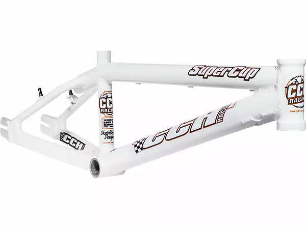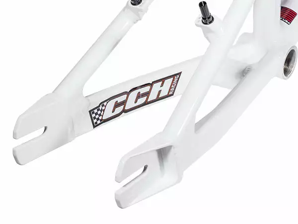 The CCH Racing Super Cup BMX race frames are U.S.A. Made from 6061 seamless aluminum tubing and heat-treated to T-6 hardness for improved strength and stiffness. The frames feature aggressive racing geometry, oversized tubing, unique CCH wishbone design, and their exclusive “closed-loop” boxed chainstay.