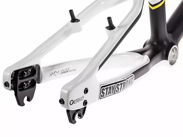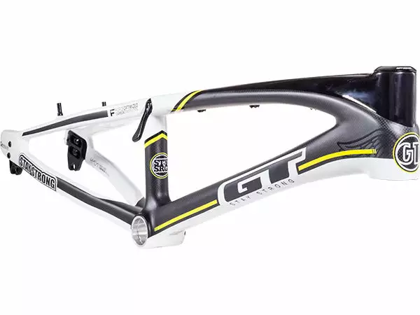 The GT Stay Strong Speed SRS Carbon BMX Frame kit features state-of-the-art carbon tubing that brings BMX to a whole new level. The all new carbon BMX frame is 10% lighter than the GT Speed Series and roughly 15% lighter than the Redline carbon frame kit. The kit also features a GT carbon fork, sealed internal headset with over-sized bottom bearing, BB30 bottom bracket shell with Euro adapter (for using standard Euro bottom bracket) and built-in chain adjusters.