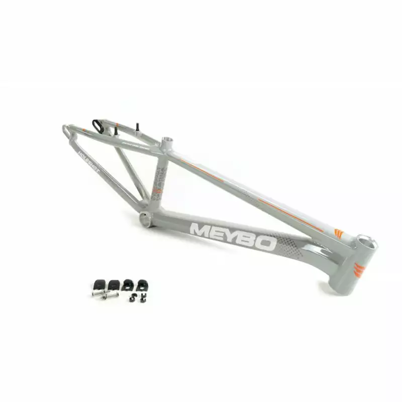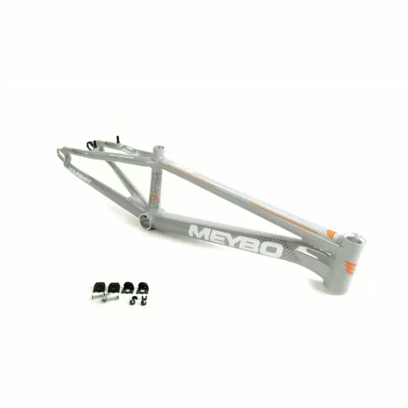 The Meybo Holeshot BMX Race Frame-Grey/White/Orange is a high-quality race frame constructed from super tough and lightweight 6061-T6 aluminum alloy. The tubing is square-tapered and multi-butted to provide even more strength and stiffness allowing for superior handling and responsiveness. The Holeshot frames are the official race frame for the Dutch National Team.
