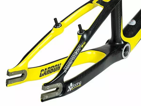 The Prophecy Scud Evo Carbon BMX Race Frame-Matte Carbon/Yellow features 3K carbon layer tubing with new full rear carbon dropouts. The carbon BMX frame also features an internal cable routing system and a CNC machined aluminum quick release seat clamp that is specifically designed for use on carbon frames.