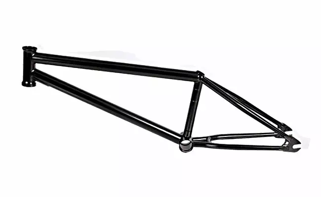 Edwin Delarosa signature frame featuring heat–treated, double butted (with internal gussets) Mugen tubing (20% stronger than 4130 chromoly) for the top–tube and down–tube. The rest of the tubing is heat–treated 4130 chromoly. External down–tube gusset. The chain–stays and seat–stays are both tapered and designed to fit wide tires. The seat–tube is externally butted and works with a wedge post only (included). Removable brake mounts thread into the seat–stays. Uses an Integrated headset (11/8″) and a MID bottom bracket.Â