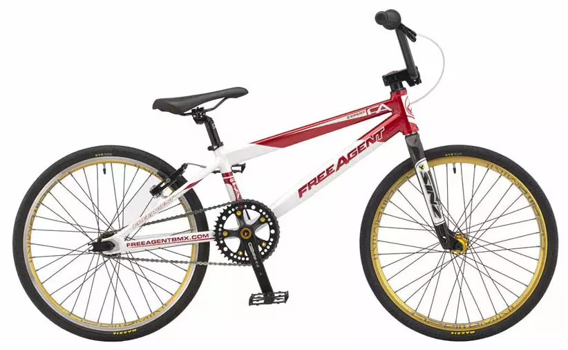 The Free Agent 2015 Team Expert BMX Race Bike-Red/White has everything you would expect from a top of the line complete BMX bike. Lightweight frame with custom formed tubing, carbon fork, outboard bottom bracket, aftermarket brakes and more make this BMX race machine destined for the podium.