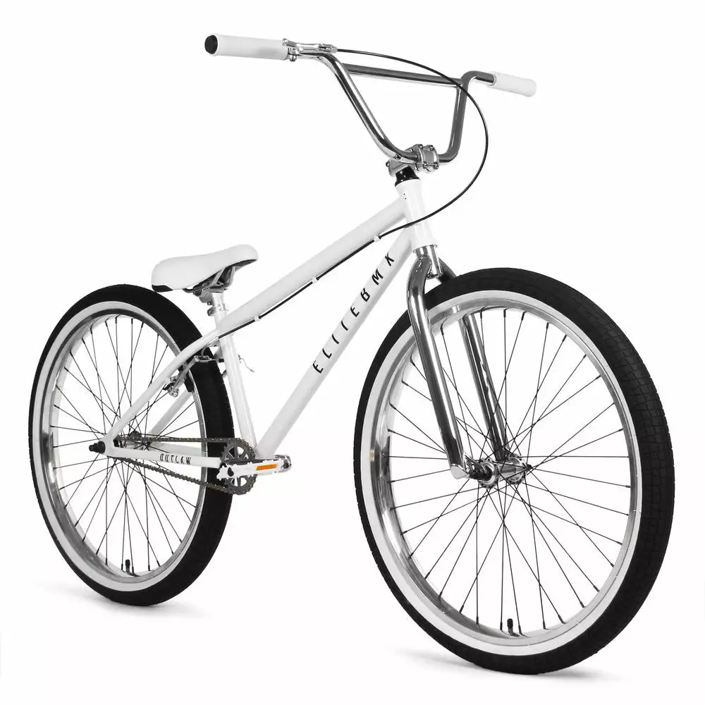 The Elite BMX Outlaw 26″ BMX Freestyle Bike-White Combat features a sealed bottom bracket for zero to easy maintenance, a three-piece crank for smooth pedaling, and a 4130 chromoly frame. The two piece handlebars have a 8.75 inch rise, while 26 inch tires round out the package.