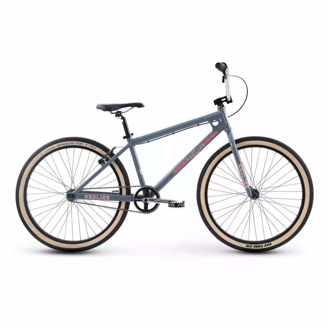 The Redline SQB-26 26″ BMX Freestyle Bike-Grey Gloss is a nod to our very first production BMX bike, the Squareback. It features an aluminum alloy frame and a full chromoly steel fork. Vintage-style graphics, double head tube gussets, and the V-shaped handlebar let you roll around town in retro style. You can also bust out a few laps at your local track, thanks to the race-worthy components, including Flight cranks, a Redline Sport saddle, and Vee Speedster 26×2.125 inch tires.