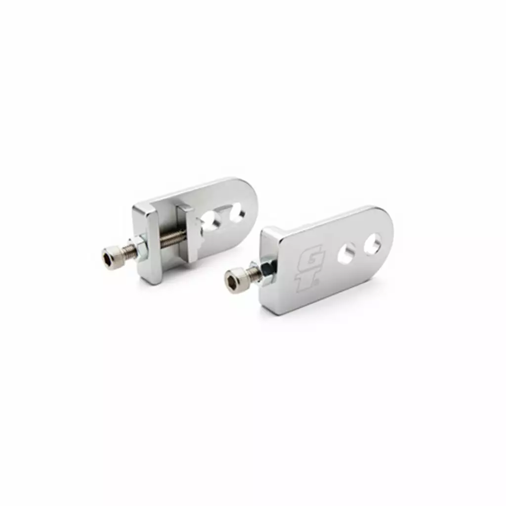 The GT G-1 Chain Tensioner-10mm at J&R Bicycles adds stability to your handling in high-torque situations by preventing shifting and adding support to pegs. Made from high-strength 6061-T6 aluminum, these chain adjusters have been extruded and CNC machined for maximum strength and durability. The two 10mm mounting holes allow for easy adjustment on most frames.