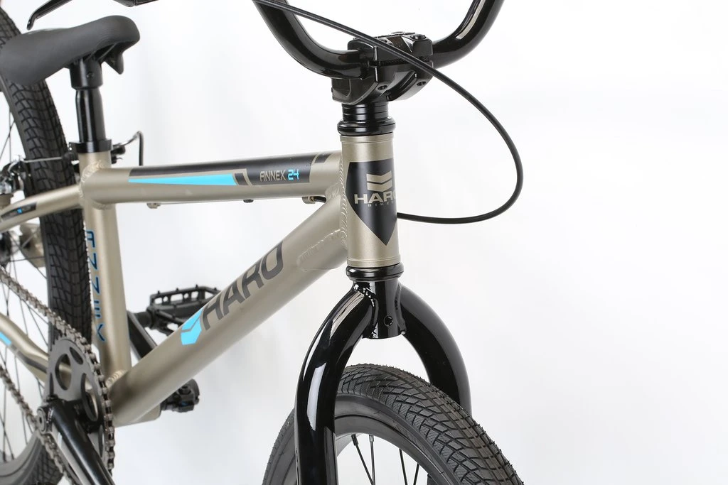 Rounding out the Annex line is the Annex Pro 24 model. Centered around a 21.75″ top tube cruiser sized frame, the Pro 24 features the same spec found on the 20″ Annex models. With 175mm 3 piece chromoly cranks and full size 24″ 36 spoke alloy wheels, the Pro 24 is strong and versatile for riding at the BMX track or cruising through the neighborhood.
