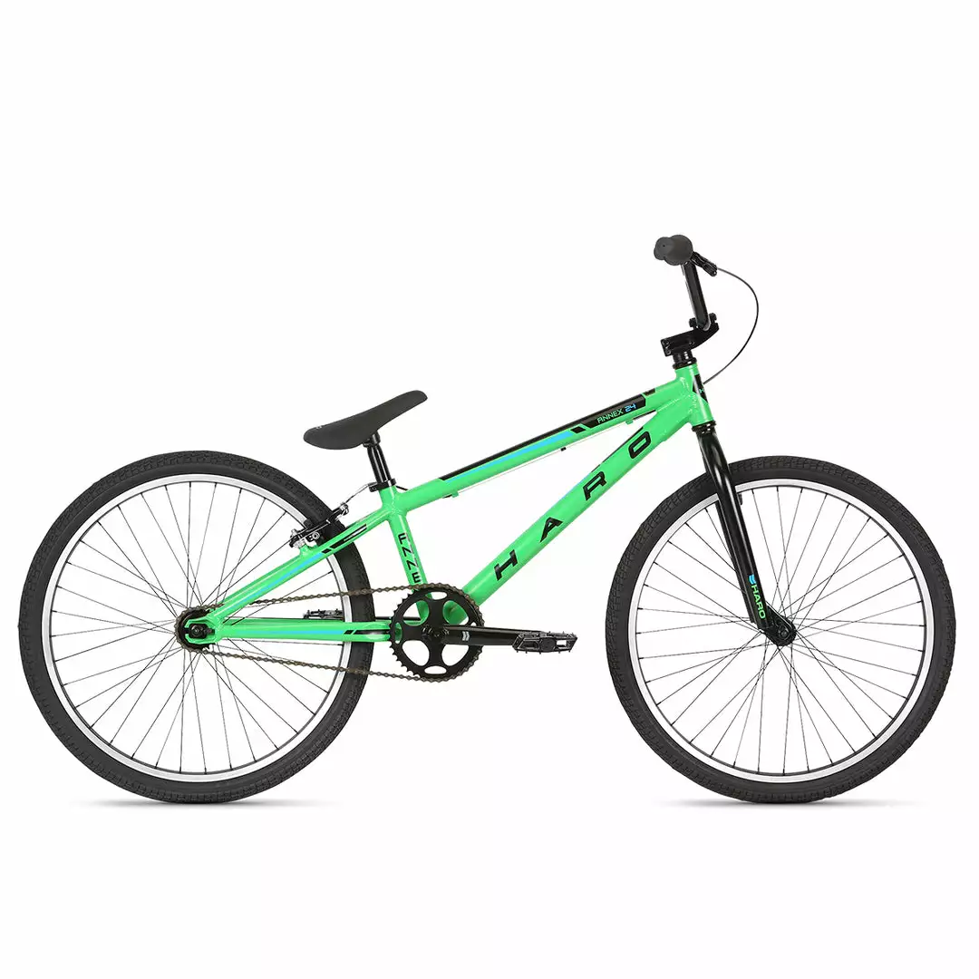 The Race Lite’s understudy is the Annex range. Eight individual models, each designed to deliver quality and performance at a price point, cater to a broad spectrum of age groups and experience levels. Featuring a Haro Annex Pro Cruiser 24″ BMX Race Bike-Matte Green for taller riders, Annex covers a whole lot of ground. All Annex models utilize 6061 aluminum frames, making them durable and light, and versatile at the track, on the school commute, or just shredding with friends in the neighborhood.