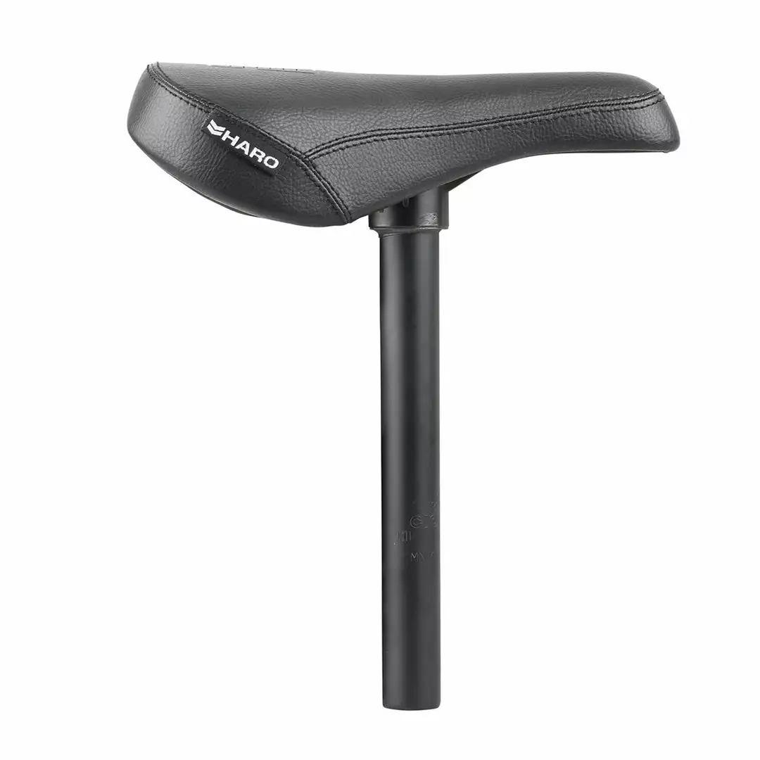 The Haro Baseline Standard Seat/Post Combo-Black is a simple seat and post replacement solution for not only a noticeable weight reduction, but a noticeable upgrade in style as well. The 3 panel PHU leather design covers the medium thickness padding, making it ideal for all styles of riding. An embossed Baseline logo will let your competition know that you use the seat of champions. Includes a 200mm long aluminum post.