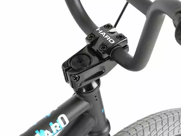 - Hi-ten bars 8″ (on 19.5″) or 8.25″ (on 20.5″) with Haro 1978 alloy top load stem