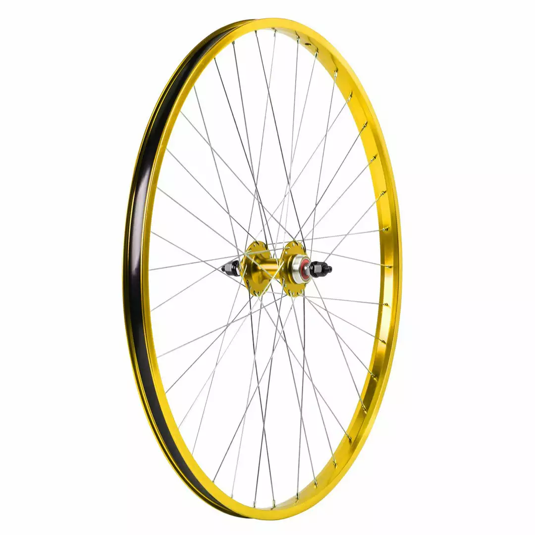 The Haro Legends Rear 29″ BMX Wheel has a sealed bearing on a 3/8″ axle. The spokes are all stainless steel. The sealed alloy hubs come in a variety of colors to best match the color scheme you’re going for.