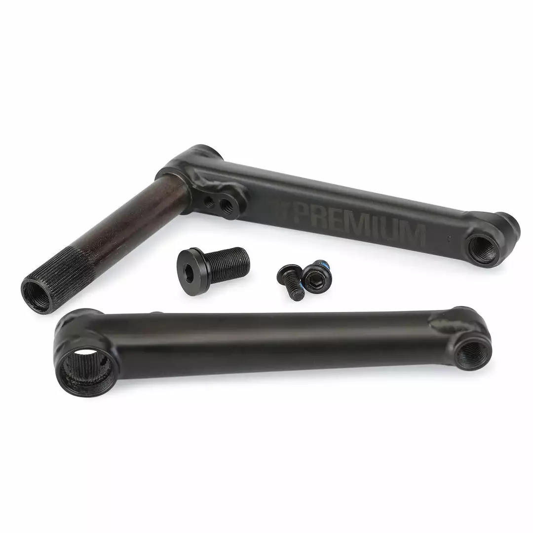 The Premium 22mm 2-Piece Crankset simplifies the crank design by affixing the spindle to the right arm. This not only reduces the weight of those precious ounces, but also beefs up the stiffness, giving you solid, consistent torque with each rotation. The 22mm, 48-spline spindle is made from 4130 heat treated Cr-Mo, and can be set up for Right or Left hand drive.