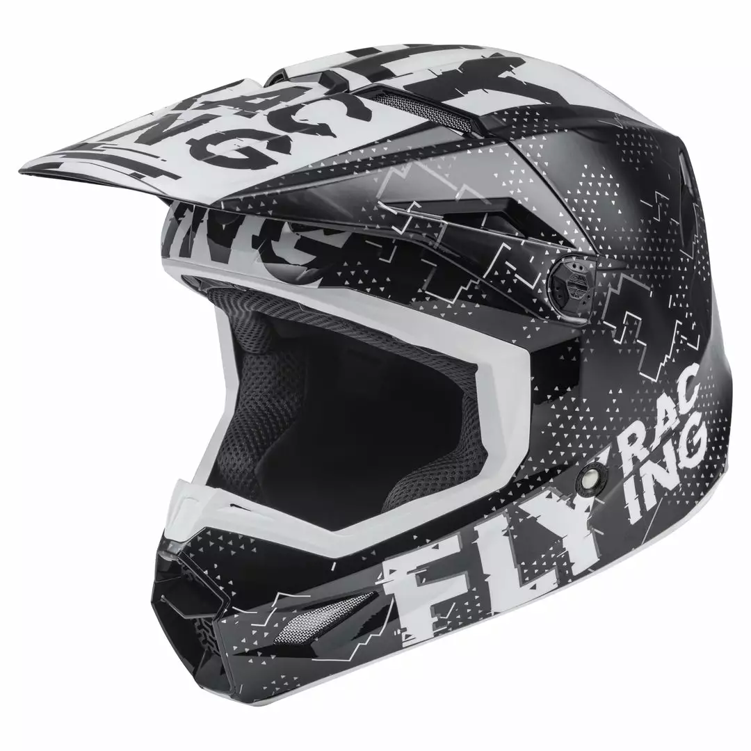 The Fly Racing Kinetic Scan BMX Race Helmet-Black/White is the one to get if you are looking for solid, no frills, but will definitely protect your head helmet. DOT Approved. With a polymer shell and EPS liner, this helmet stays lightweight. The liner and cheek pads are removeable and washable to keep the stink to a minimum.