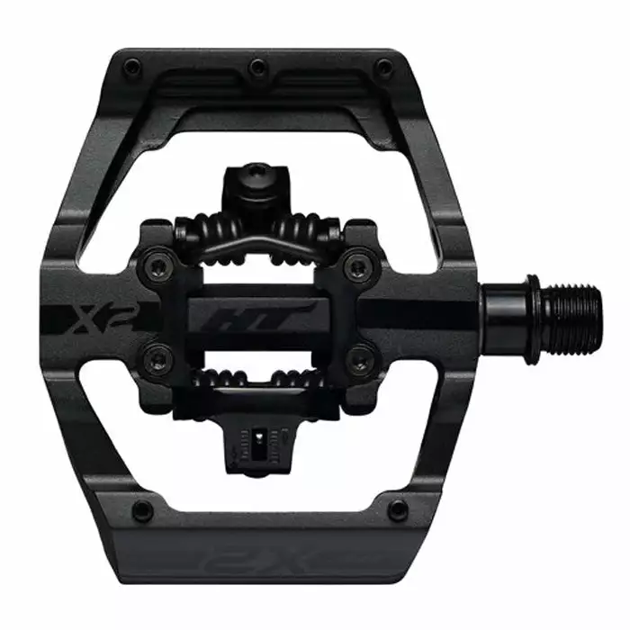 HT X2 Clipless Platform BMX Pedals are CNC aluminum with a chromoly spindle and feature five pins on each side for extra grip during those pre and post clip in moments. Comes with HT’s proprietary cleat system to give you either 4 or 8 degrees of float.