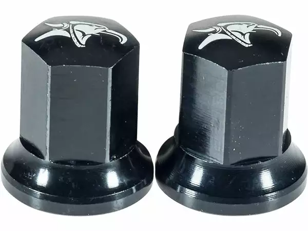 Open ended alloy axle nuts. 26T (thread count – the norm for BMX).  Sold in pairs.  Choose between 3/8″ or 14mm depending on your axle size. Available in two different styles: Capped (with a closed end) or Open (with an open end). The Capped bolts have a nice clean finish to them if your axles are somewhat short. If you have long axles then you will have to go with the Open version.