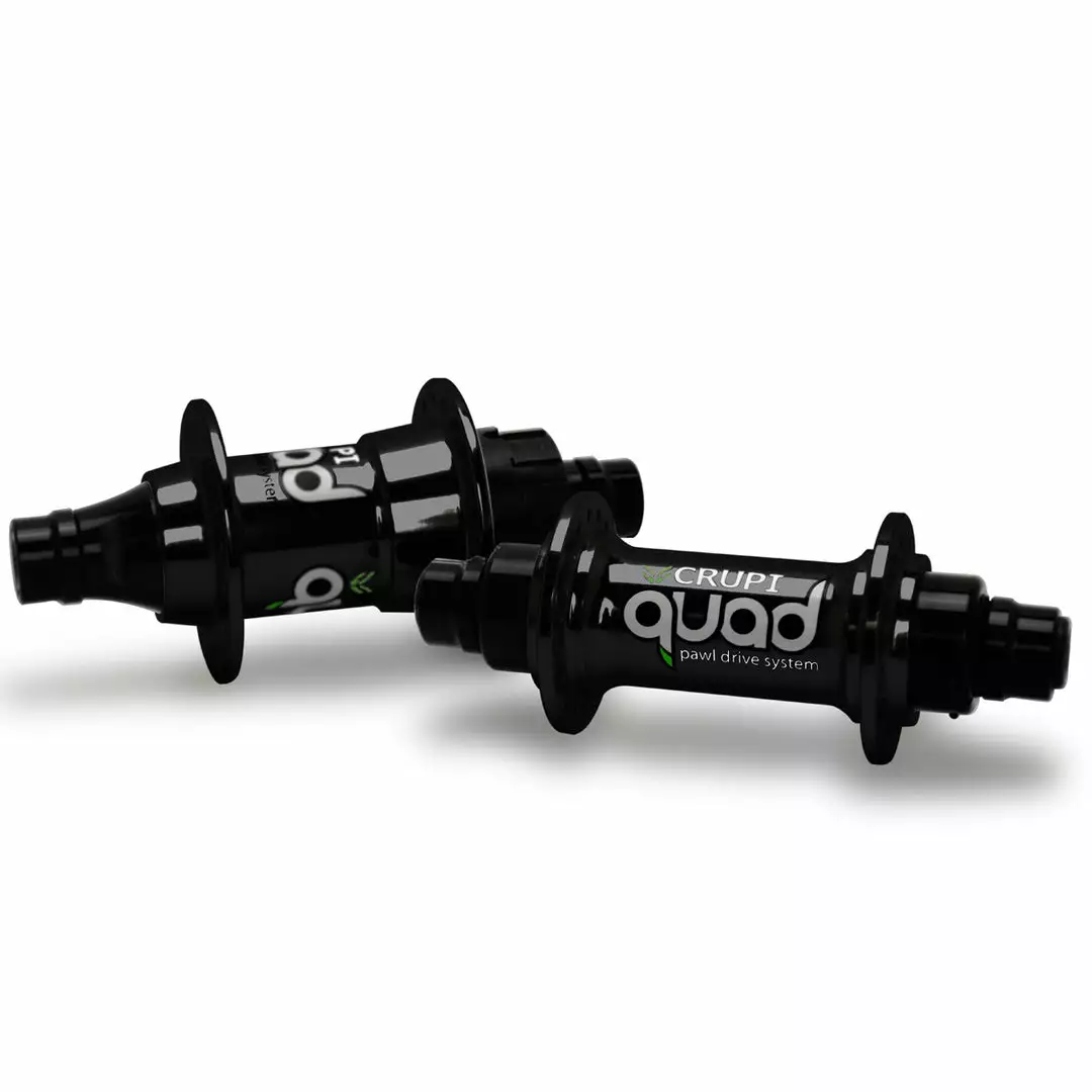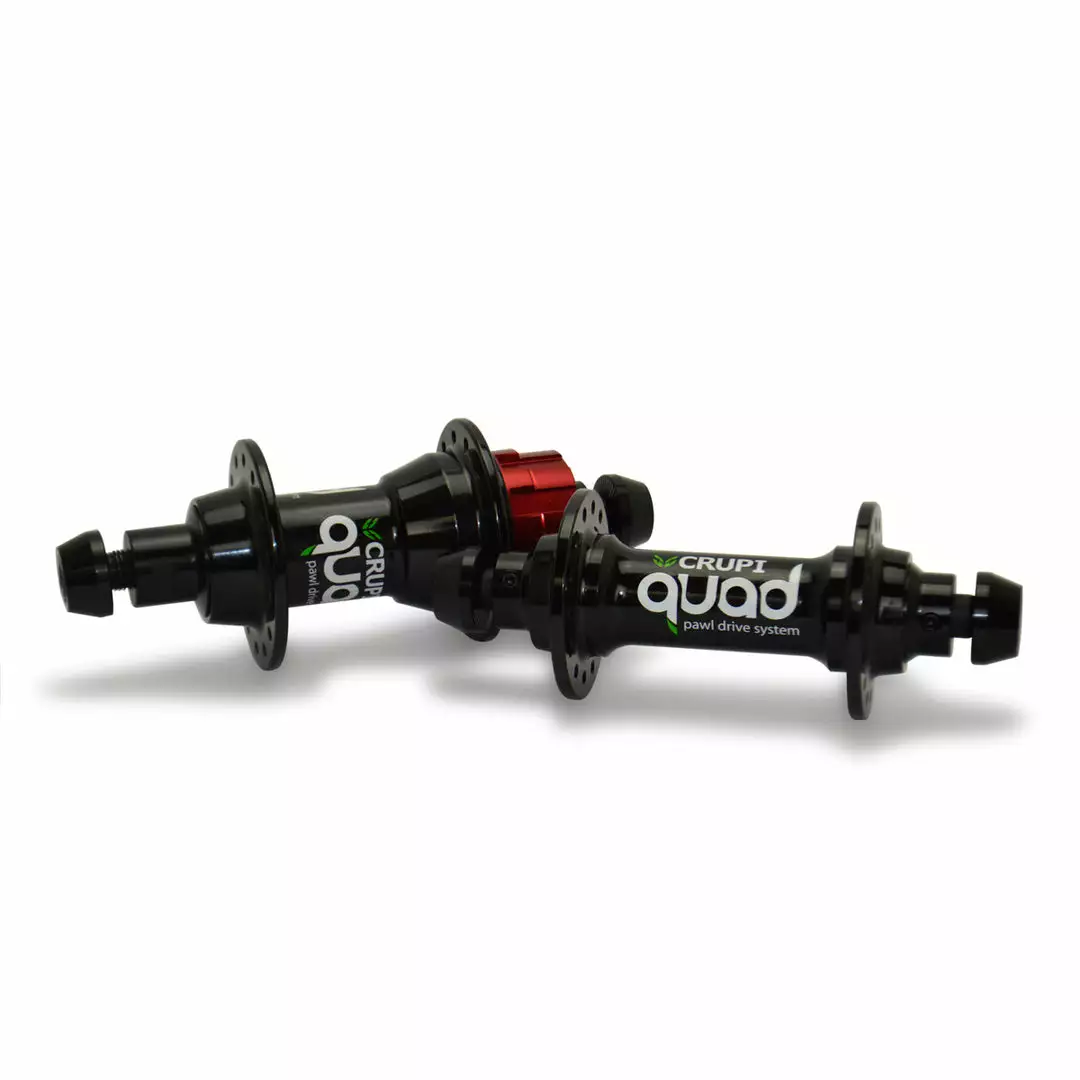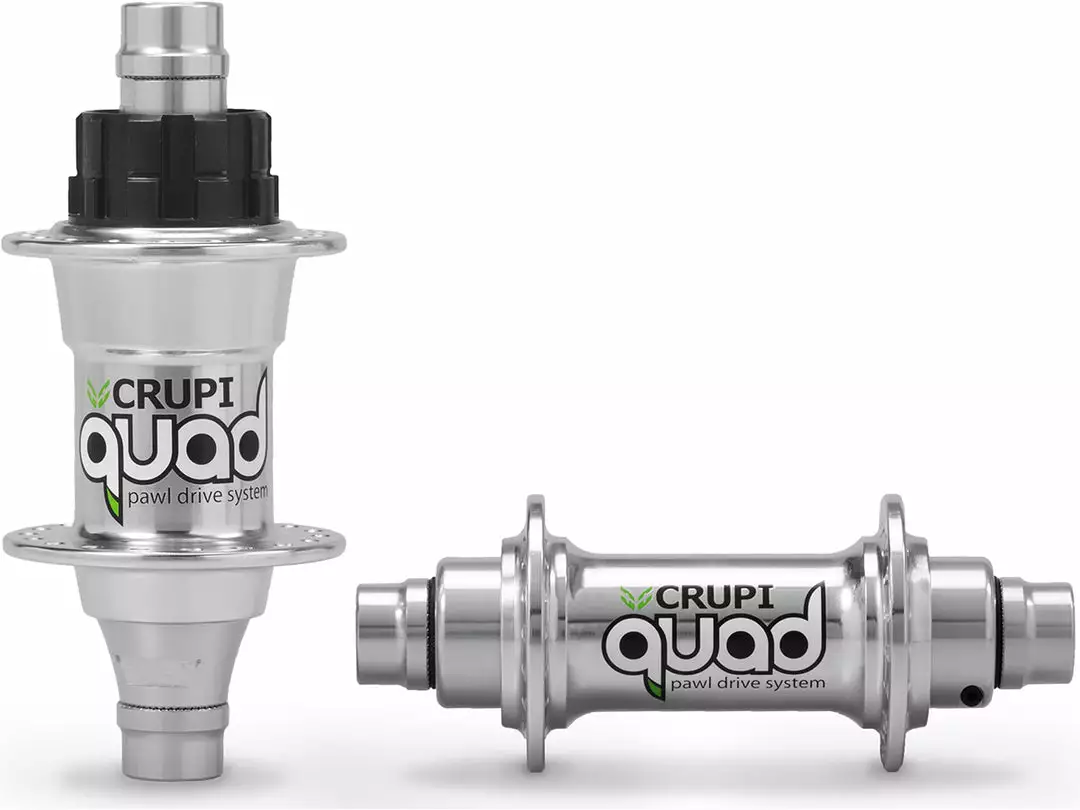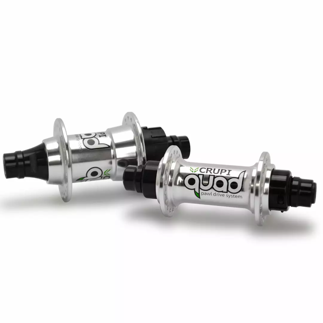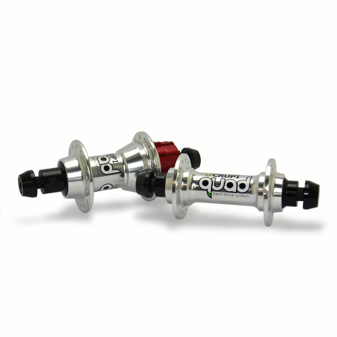 The Crupi Quad Hub Set features a new alternative design which is similar to instant engagement but without the higher cost. The Quad has 150 ratchet teeth that engage every 2.4 degrees with 4 pawls (3 pawls in the 28H hub). Four cog spacers are still included, allowing you to position the cog where it provides the best possible chain alignment. The hubset comes with a 16t cog but is designed to work with any Shimano compatible cog and any Shimano type tool will remove the cog.