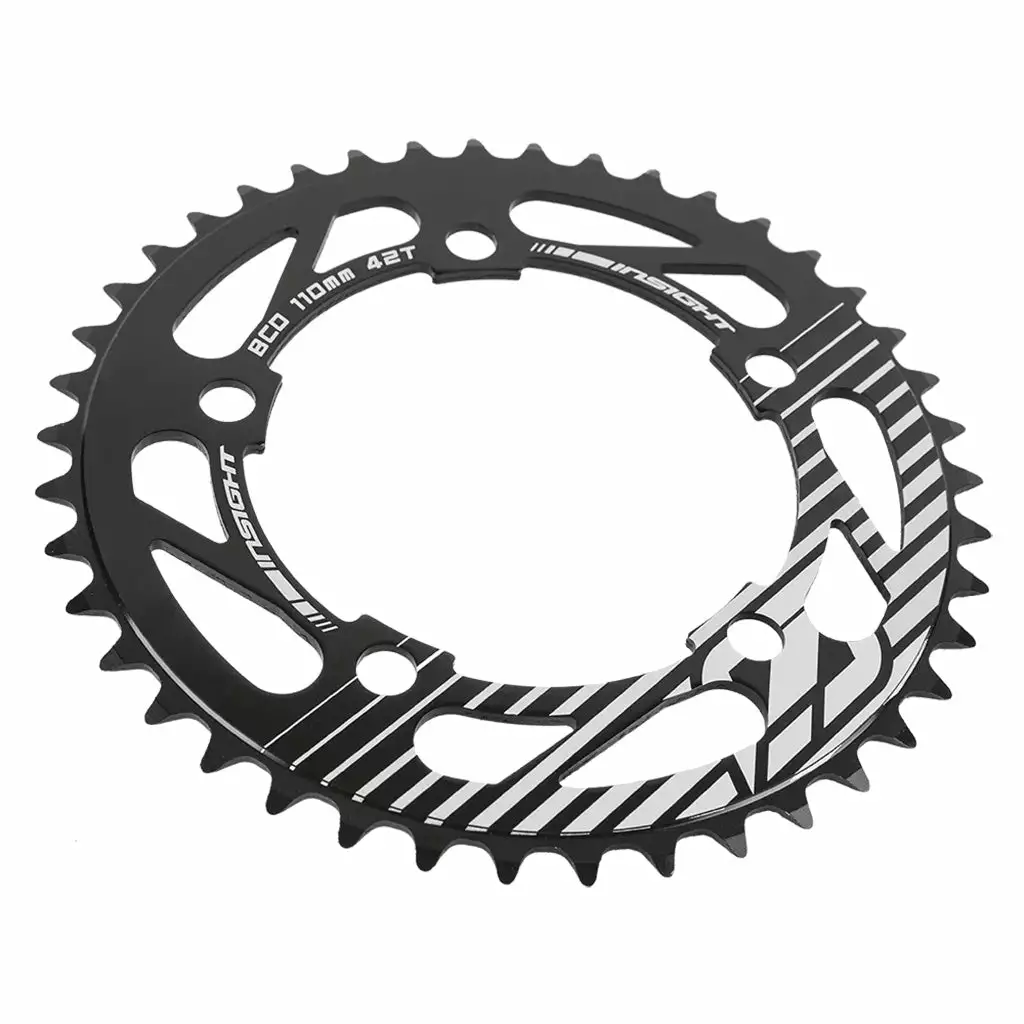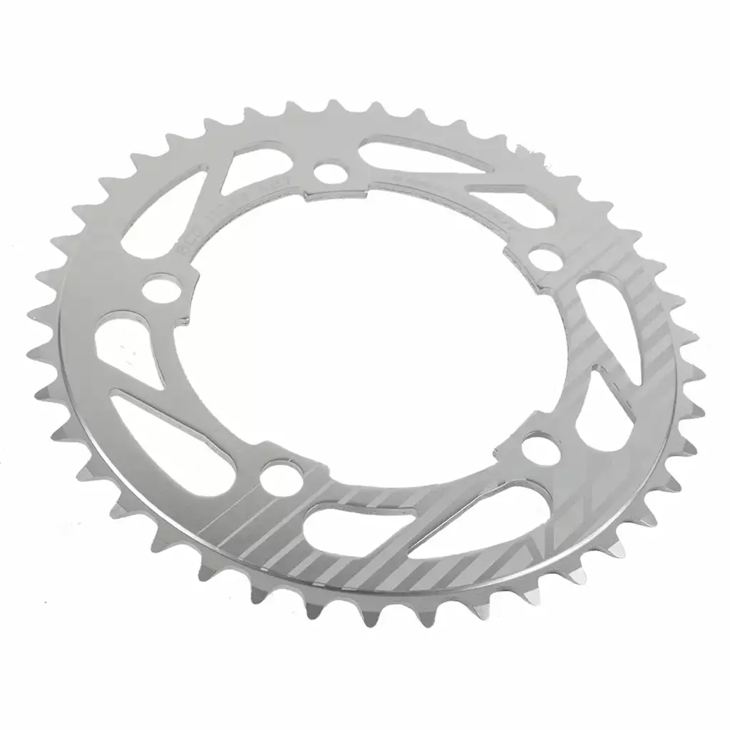multiple cutouts around the perimeter to help shed weight, laser-etched graphics and 3/32″ teeth. Compatible with 5×110 spider gears only.