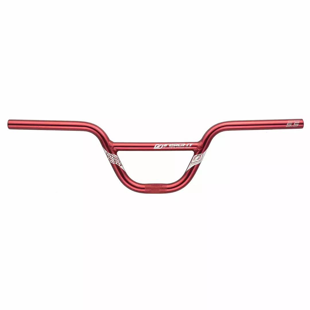 The Insight Alloy BMX Race Handlebar – 5.5” is available in a variety of colors, all manufactured from 6061 T6 Aluminum to provide you the one of the most durable handlebars out on the market today, while only weighing in at 13 ounces. This extra light butted bar features a 5.5” rise with an 8° sweep, and the recommended weight for riders coming in at 130lbs.