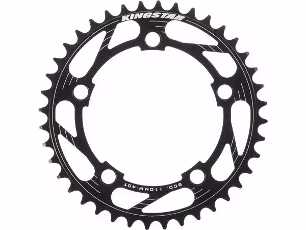 The Kingstar 5-Bolt chainring features the standard 110mm 5 bolt pattern, forged aluminum with machined teeth and etched Kingstar graphics.
