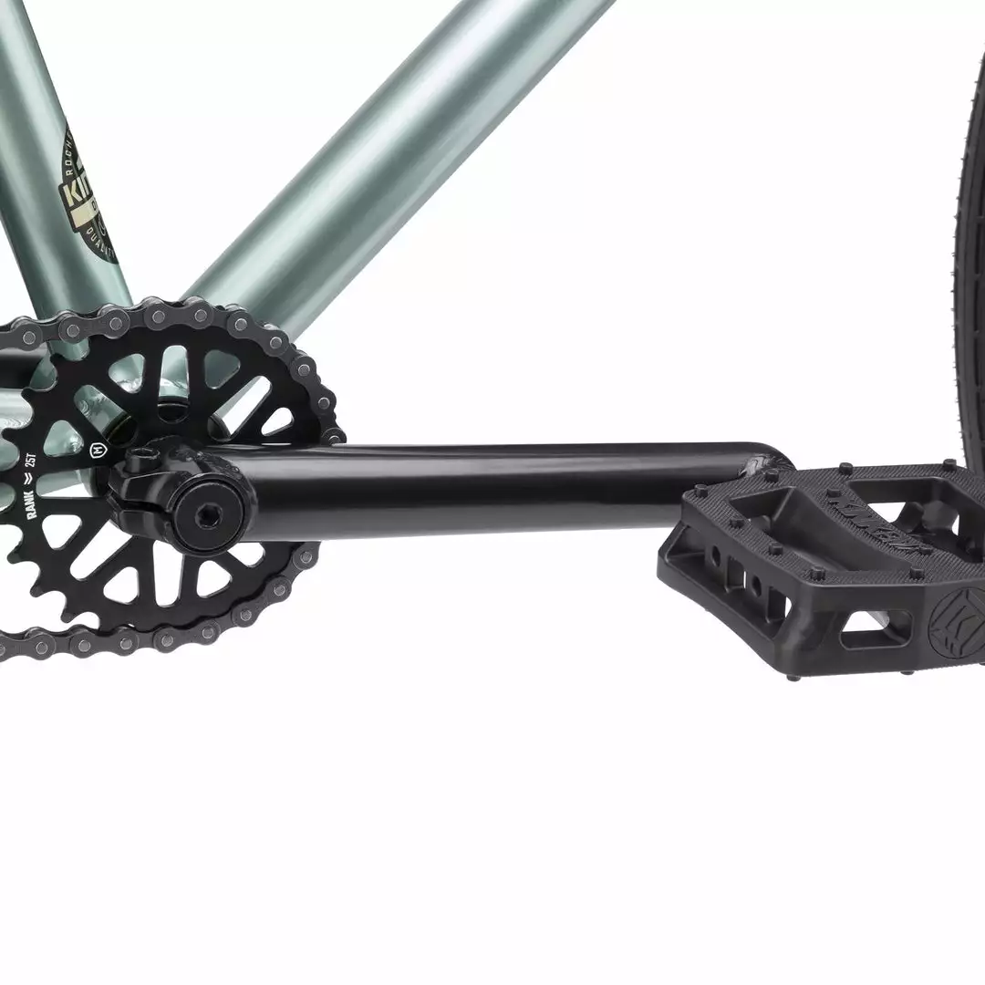 Despite its popularity, the Kink 2021 Drifter 26″ BMX Bike-Gloss Mirror Green is our only 26” bike. Kink BMX is a BMX brand, through and through, and the Drifter is truly an extension of that. This bike is for the BMX dad whose back has seen better days, but he’s still not afraid to jump a curb or two. It’s for riding to school or work when the 20” wheels aren’t so practical. The Drifter is for having fun on your bike and ripping a timeless skid. The Drifter uses all standard BMX specs and components, which makes things super easy to maintain and gives the bike an extremely natural feel to a BMXer. The Gloss Mirror Green colorway really shines and is complimented with a matte black aluminum headtube badge.