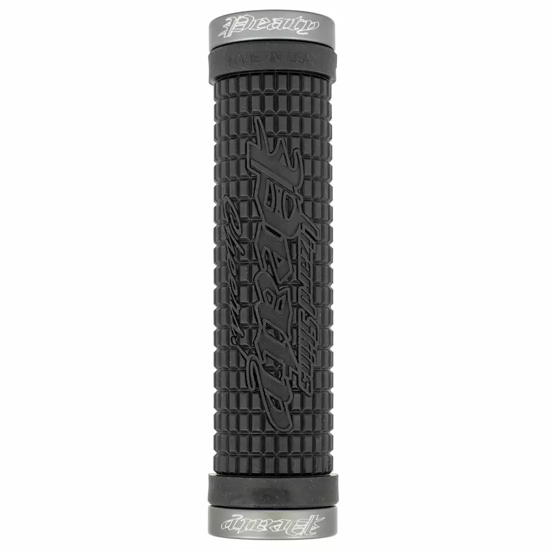 - STYLE: Lock-on, thin knurled grip with “Peaty” logo