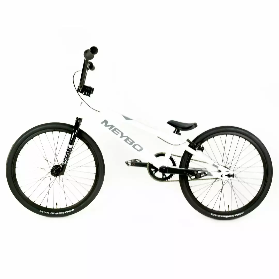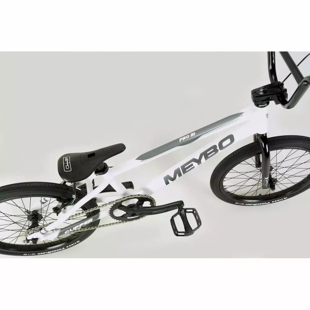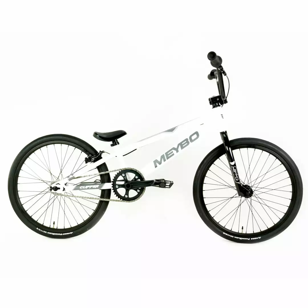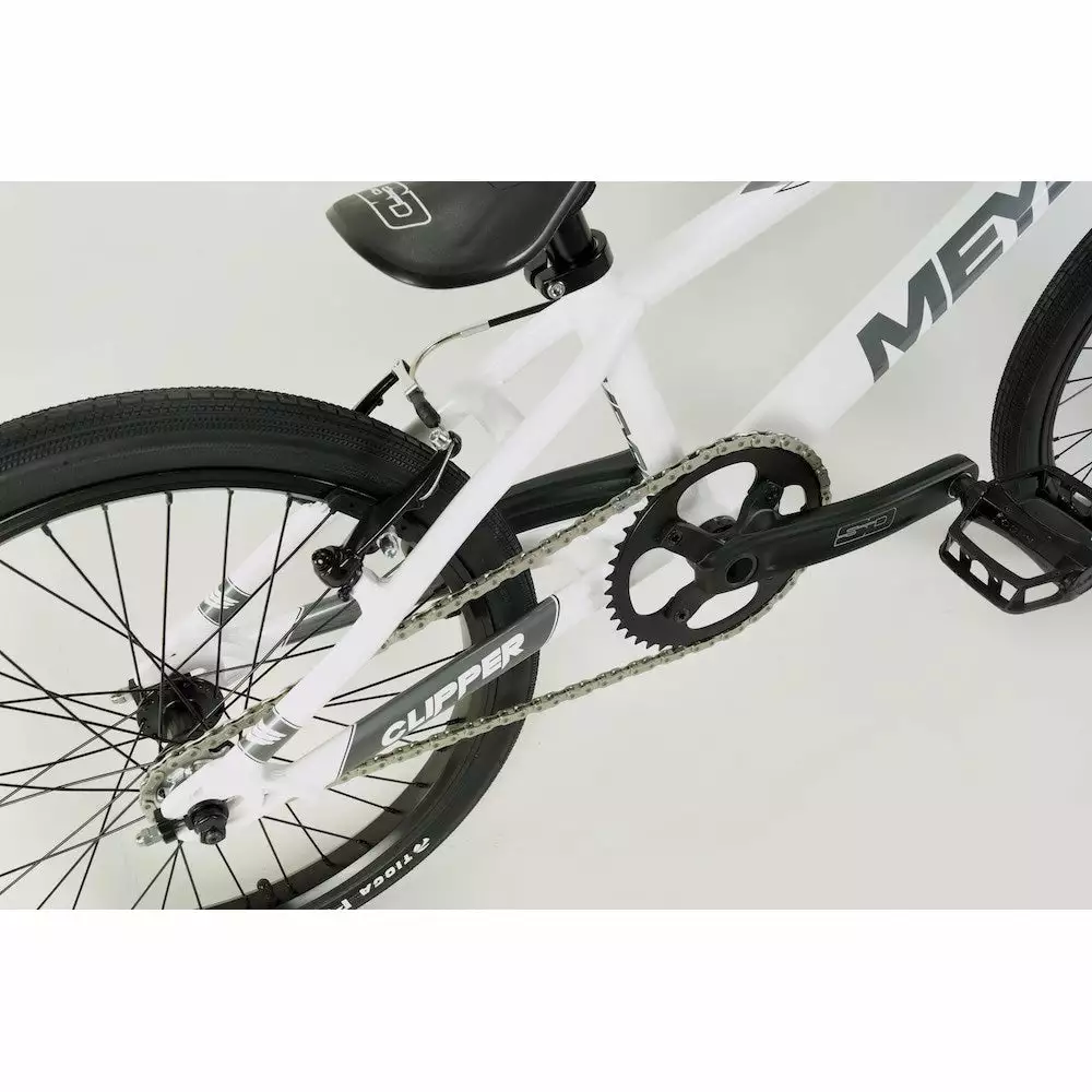 The Meybo Clipper Expert XL BMX Race Bike-White/Grey/Black is the budget minded sibling to Meybo’s race winning Holeshot model. Keeping it in the family, the two model’s frames share the exact same geometry. You guys look SO alike! Clearly what sets the Clipper apart is the accessible price point for what is, let’s be honest, an incredible bike. Features a bunch of SD Components. The fork, stem, handlebars, seat, crankset…all from SD. Race ready Tioga Powerblock tires provide a solid bike-track interface.