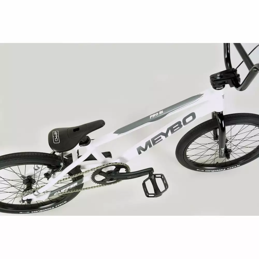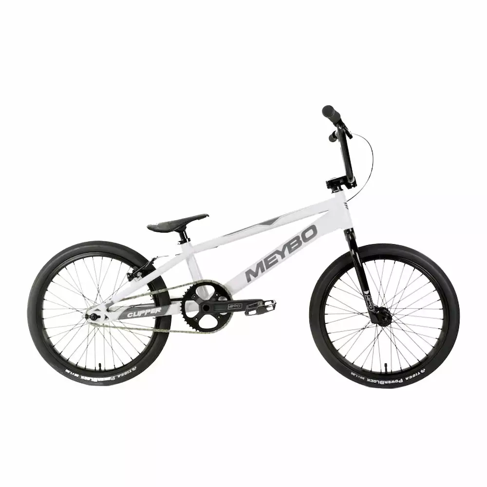 The Meybo Clipper Pro XXL BMX Race Bike-White/Grey/Black is the budget minded sibling to Meybo’s race winning Holeshot model. Keeping it in the family, the two model’s frames share the exact same geometry. Clearly what sets the Clipper apart is the accessible price point for what is, let’s be honest, an incredible bike. Features a bunch of SD Components. The fork, stem, handlebars, seat, crankset…all from SD. Race ready Tioga Powerblock tires provide a solid bike-track interface.