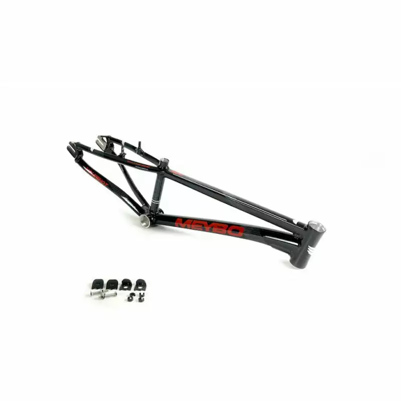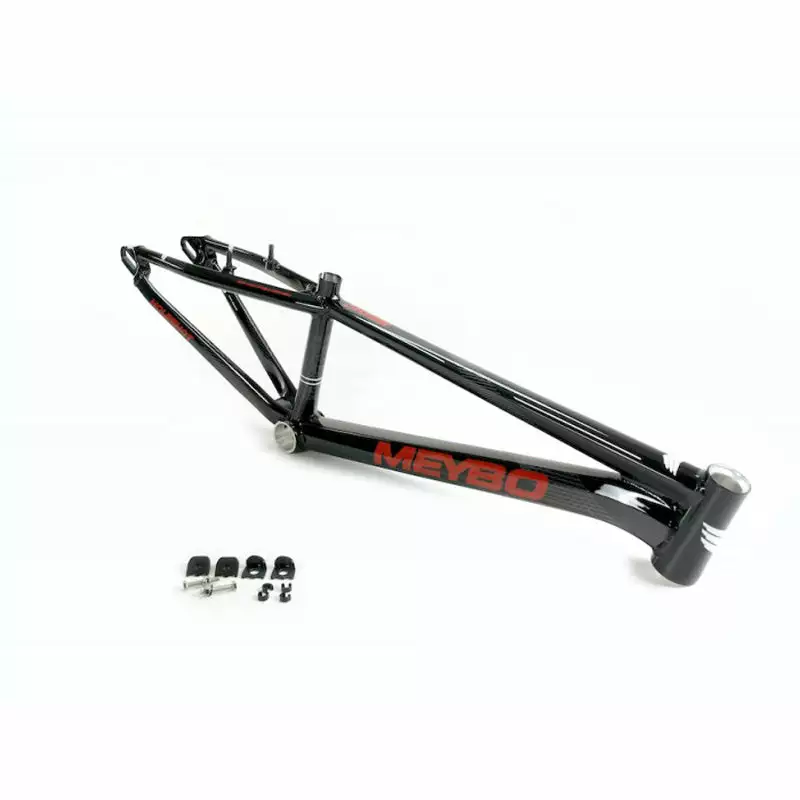 The Meybo Holeshot BMX Race Frame-Black/Red/White is a high-quality race frame constructed from super durable and lightweight 6061-T6 aluminum alloy. The tubing is square-tapered and multi-butted to provide even more strength and stiffness allowing for superior handling and responsiveness. The Holeshot frames are the official race frame for the Dutch National Team.