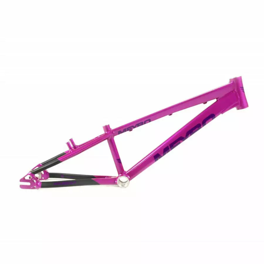 The Meybo Holeshot BMX Race Frame-Pink/Purple/Black is a top notch aluminum race frame designed for ultimate stiffness and responsiveness. People rave about Meybo frames because they have great geometry for a race bike. They are disc brake adaptable. The head tube is oversized providing stiffness for the fork. Don’t want to forget the open drop out either (Mini to expert xl) and closed drop out for (pro21 to pro23). J & R Bicycles is the U.S. distributor for these frames.
