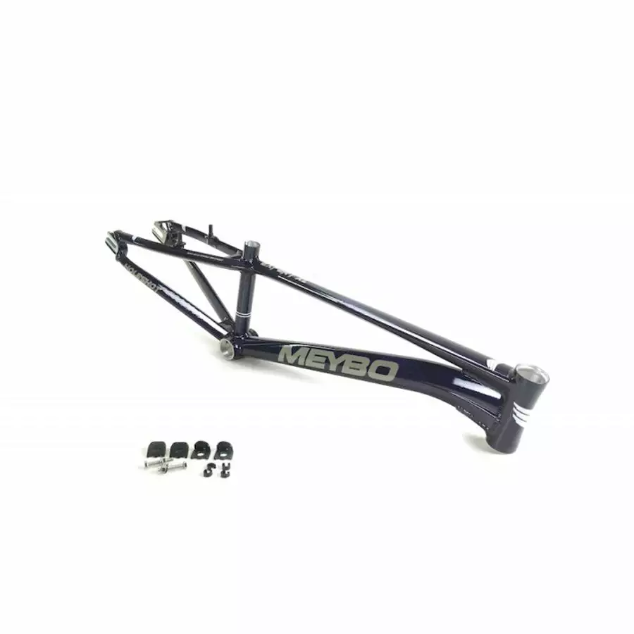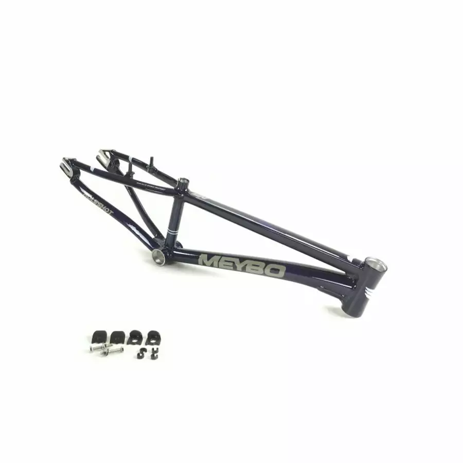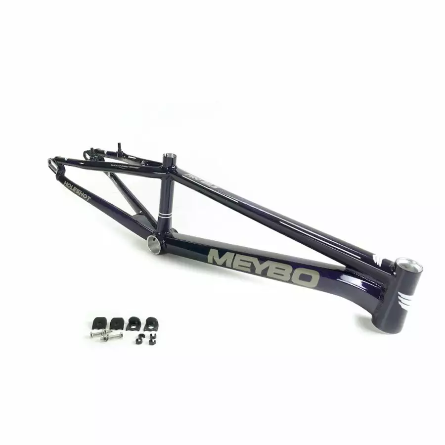 The Meybo Holeshot BMX Race Frame-Purple/Grey/White is a high-quality race frame constructed from super tough and lightweight 6061-T6 aluminum alloy. The tubing is square-tapered and multi-butted to provide even more strength and stiffness allowing for superior handling and responsiveness. The Holeshot frames are the official race frame for the Dutch National Team.