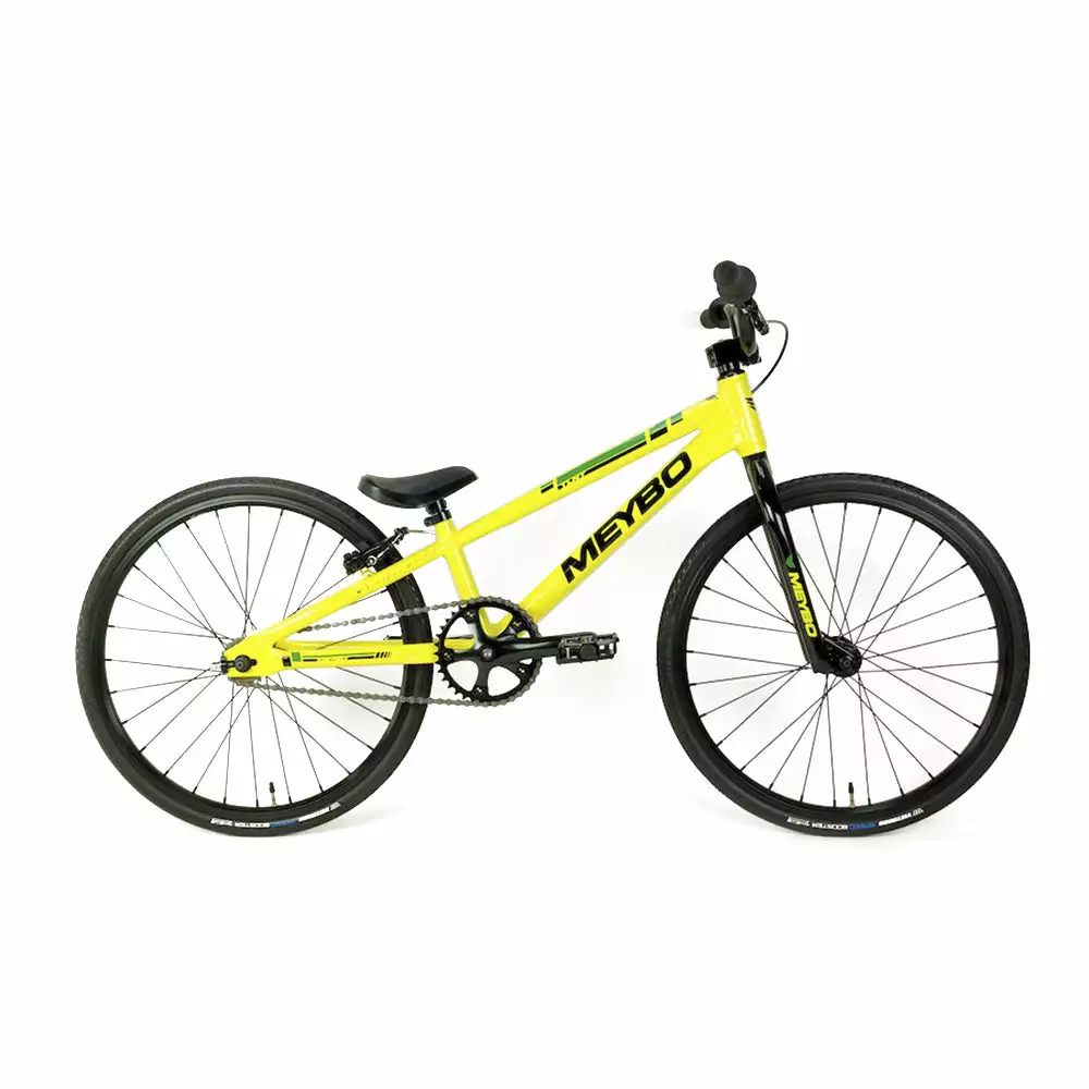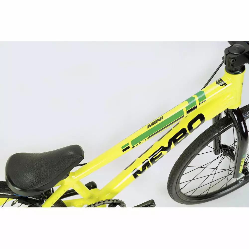 The Meybo TLNT Mini BMX Race Bike-Citrus/Black/Green is an entry level race bike with an elite pedigree. A perfect complete bike designed to get you racing right out of the box without agonizing over which parts to get and, “will they fit?” while trying to build your own. Just because it’s entry-level does not mean that Meybo has skimped on the good stuff. Parts include SD Alloy handlebar, SD Stem, and SD Square cranks. Rounding out the package are a pair of Vee Speedbooster tires to maximize your on-track potential.