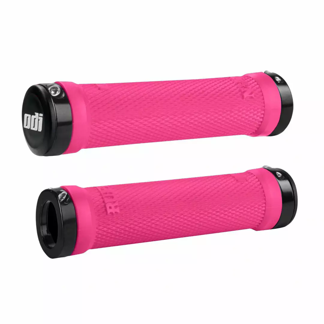 The ODI Ruffian Flangeless Lock-On Grips at J&R Bicycles feature a slightly firmer rubber compound with an ultra-knurled surface for comfort and control. The knurled pattern provides a comfortable and efficient grip while maintaining a super-narrow racing profile and the Lock-On Grip System means you get zero slippage. New Snap Cap End Plugs are included with every pair.