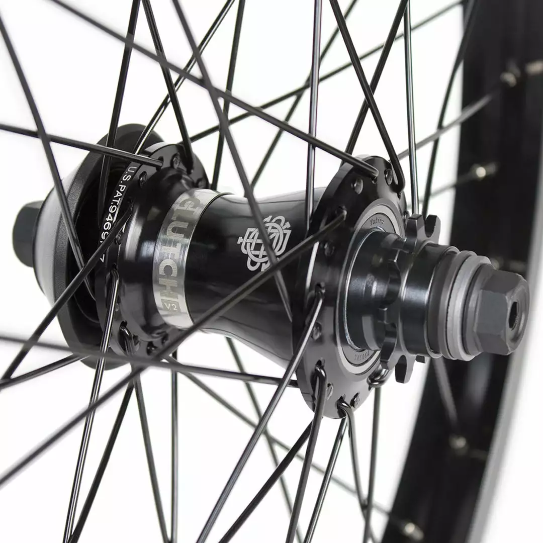 The Odyssey Hazard Lite Rear Freecoaster Wheel-RHD-Black uses their Clutch V2 Freecoaster Hub inside a Hazard Lite Rim. An access hole allows for fast and easy slack adjustments. One end of the 14mm axle is covered by a removeable plastic hub guard. The rim is all aluminum.