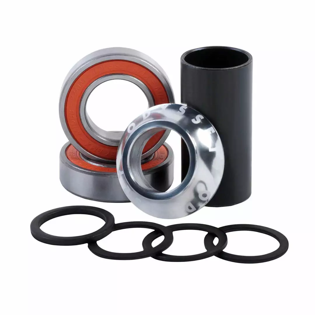 The Odyssey Mid Bottom Bracket is made to fit all 19mm/22mm spindles and press-fit Mid BB frames. It is simple and easy to install. Includes an assortment of spacers to optimize chain line and crank clearance. The Odyssey branded 6061-T6 aluminum dust spacer is included.