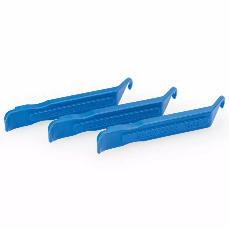 The Park Tool TL-1.2 Tire Lever Set was updated to be stronger, smoother, and more versatile. The unique design lifts the tire away from the rim and features a spoke hook to use when multiple levers are needed.